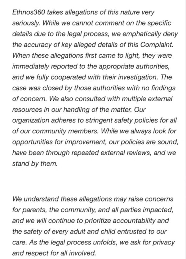 "We consulted with multiple external resources in our handling of this matter". Yes, that part 'is' true, and revealed in the Lawsuit Complaint, is the appalling dishonesty of referring the minor Alleged ABUSER to E360's own "fixer" Attorney Teresa Sidebotham, who "investigated" and then helped E360 avoid repercussions as long as possible, just has she has done while leading your own (sham) "IHART process" since 2014.