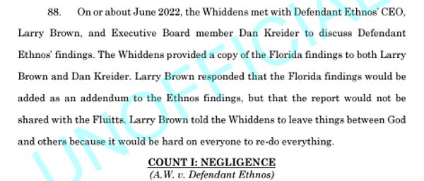 Ethnos Executives beware, you have 'also' hidden numbers of Historical Abuse Cases for many years and then entered into an unknown number of "Confidential Settlements" to keep the details secret from your Members and Donors.
