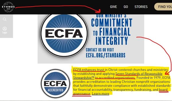 Where E360 is being called out by ETP and many others is THEIR FAILURE TO DISCLOSE TO POTENTIAL DONORS that they DO NOT meet the requirements for ECFA Members for the published ECFA Standard 2 which requires a certain level of "Independent Outside Governance" which E360 has NEVER met.