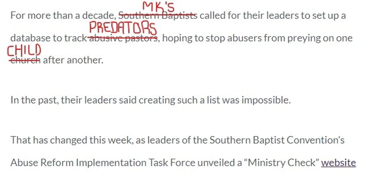 The SBC's June 14, 2023 announcement of a new Sexual Abuser Public Database just confirmed what NTM Mk Abuse Survivors have said all along: "Ethnos must stop protecting and enabling Child Predators".