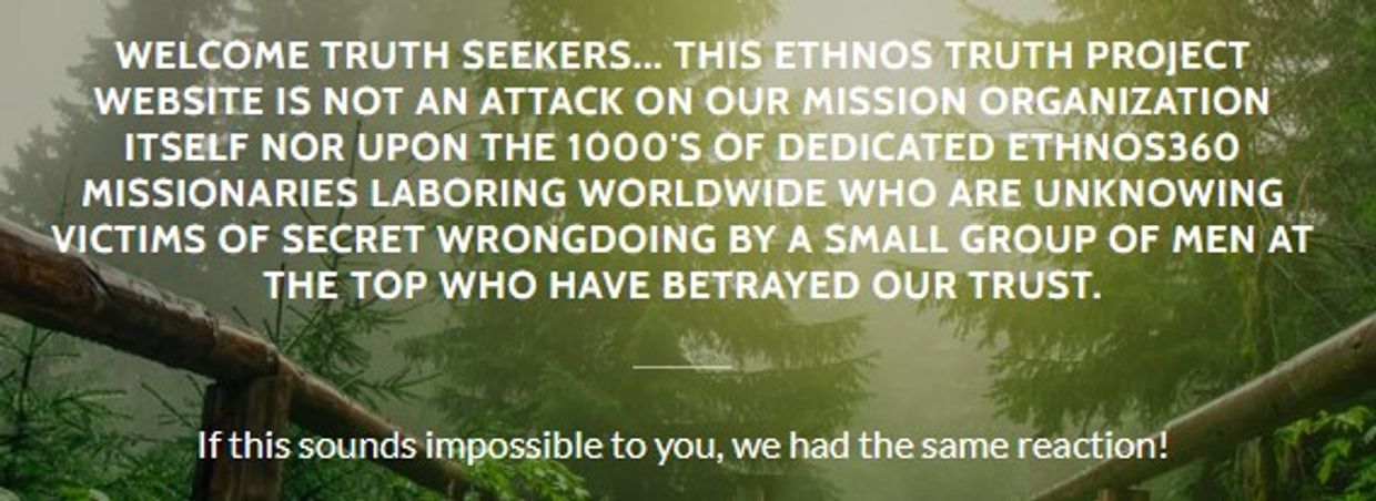 *** Many Missions-minded visitors are not aware that there are 'any' serious "Public Allegations of Wrongdoing" against Ethnos360 Leadership, let alone dozens and dozens which Ethnos HQ has deflected or covered-up entirely clear to the present day. Take a minute to Google "Ethnos360+Abuse+Info" then simply scroll down through the search results. You will soon discover why Ethnos does not want anyone to use this website to more easily understand what they have been hiding or 'explaining away' for years. ***